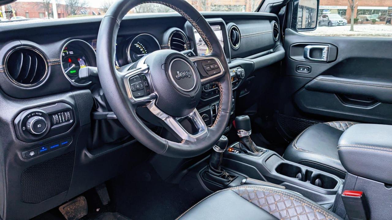 2022 JEEP WRANGLER UNLIMITED SAHARA 4xE, TURBOCHARGED, CORNING GORIILA GLASS WINSHEILD, PLUGIN ELECTRIC HYBRID, KEYLESS ENTRY, PREMIUM LEATHER SEATS, HEATED SEATS, HEATED STEERING WHEEL, NAVIGATION, FRONT & REAR VIEW CAMERA, PREMIUM SOUND SYSTEM, APPLE CARPLAY/ ANDROID AUTO, BLIND SPOT MONITOR, LOW KILOMETERS, CLEAN CARFAX AND LOTS OF UPGRADES FROM FACTORY.